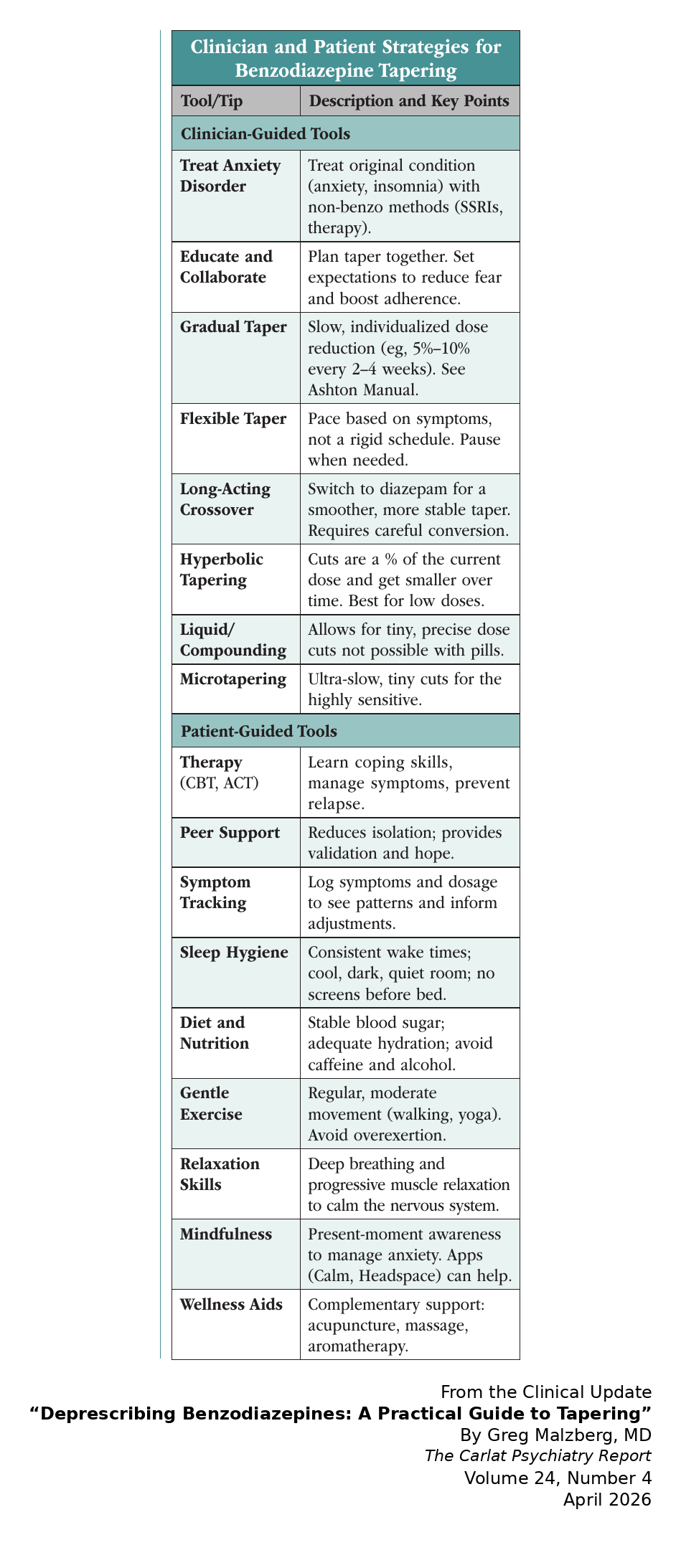 Introduce coping strategies early: good sleep hygiene, relaxation techniques like mindfulness and deep breathing, gentle exercise, and potentially adjunctive psychotherapy such as CBT for insomnia or anxiety. These tools become invaluable during the tapering process. Useful apps include Sleep Coach, SleepioRx, and Somryst for insomnia, or AnxietyCoach, Breathe2Relax, Calm, DayLightRx, and Headspace for anxiety.