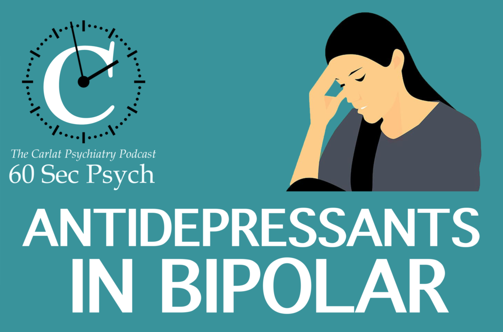 A few antidepressants worked as monotherapy, particularly fluoxetine, but those were small studies many of which came from a single group, Jay Amsterdam’s. The authors cautioned against using antidepressants in the long term, because of the risk they posed to rapid cycling and mixed states in mania, but they left open the possibility of using them for 1-2 months to get someone out of the episode.