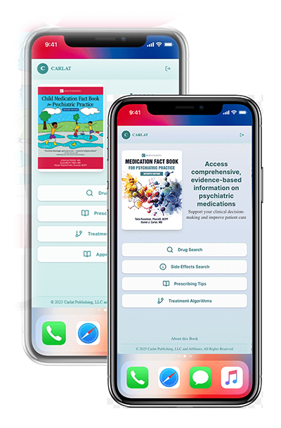 Your purchase of the Medication Fact Book for Psychiatric Practice, Seventh Edition (2024) and the Child Medication Fact Book for Psychiatric Practice, Second Edition (2023) includes free access to the app versions of each book.